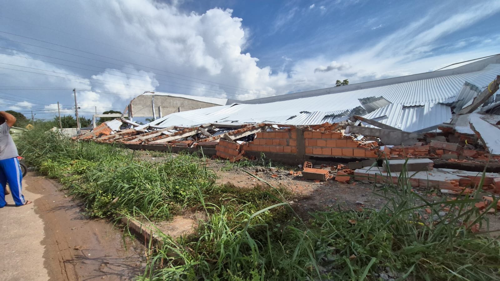Ventos fortes derrubaram um barracão, hoje, na avenida André Maggi, região do bairro Jardim Conquista. Parte da estrutura cedeu, quebrando também vidros. Não foi informado se havia pessoas no local no momento do incidente.