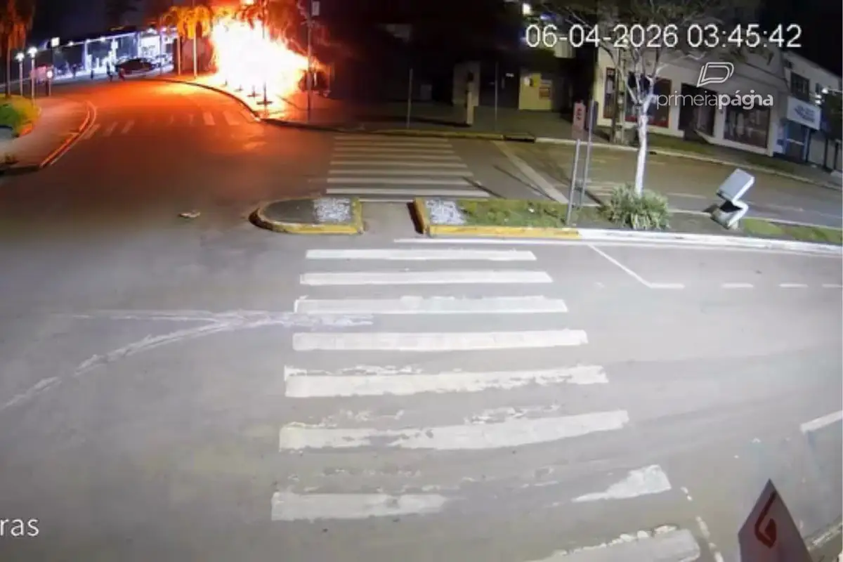 Uma câmera de monitoramento registrou o início do incêndio que atingiu uma unidade do bar Ditado Popular, localizado ao lado de um posto de combustíveis, em Sinop (MT), na madrugada dessa segunda-feira (6). Nas imagens, é possível ver a fumaça saindo do estabelecimento às 3h44. Em segundos, as chamas tomam conta do bar. Assista abaixo: