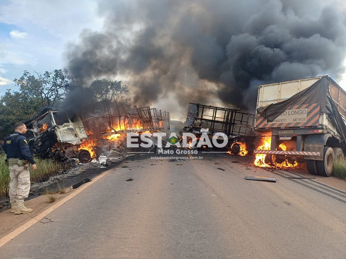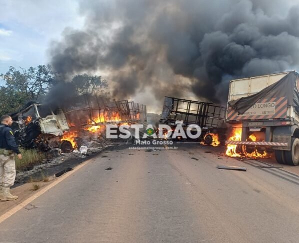 Um motorista, ainda não identificado, morreu após uma violenta colisão registrada na BR-174, nas proximidades do km 500, em Comodoro (640 km de Cuiabá), sentido Vilhena, no final da tarde desta sexta-feira, 30 de janeiro. Após o impacto, os veículos pegaram fogo, deixando um rastro de fumaça que dava para ser visto de longe.